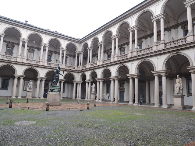 Am lăsat la urmă Pinacoteca di Brera. Este a doua cea mai mare galerie de pictură din nordul Italiei (după Galeria dell'Accademia din Venezia). Am mai fost aici, cu ocazia vizitelor precedente la Milano. Dar, la vremea respectivă, nu era permisă fotografierea în interior. Acum am prins un fel de jubileu al muzeului. Şi nu numai că am putut manevra aparatul foto după voie, dar şi accesul era permis până la ora 9 seara. Sigur, tariful a crescut şi el de la 8 euro în 2013 la 12 euro în dec. 2015.